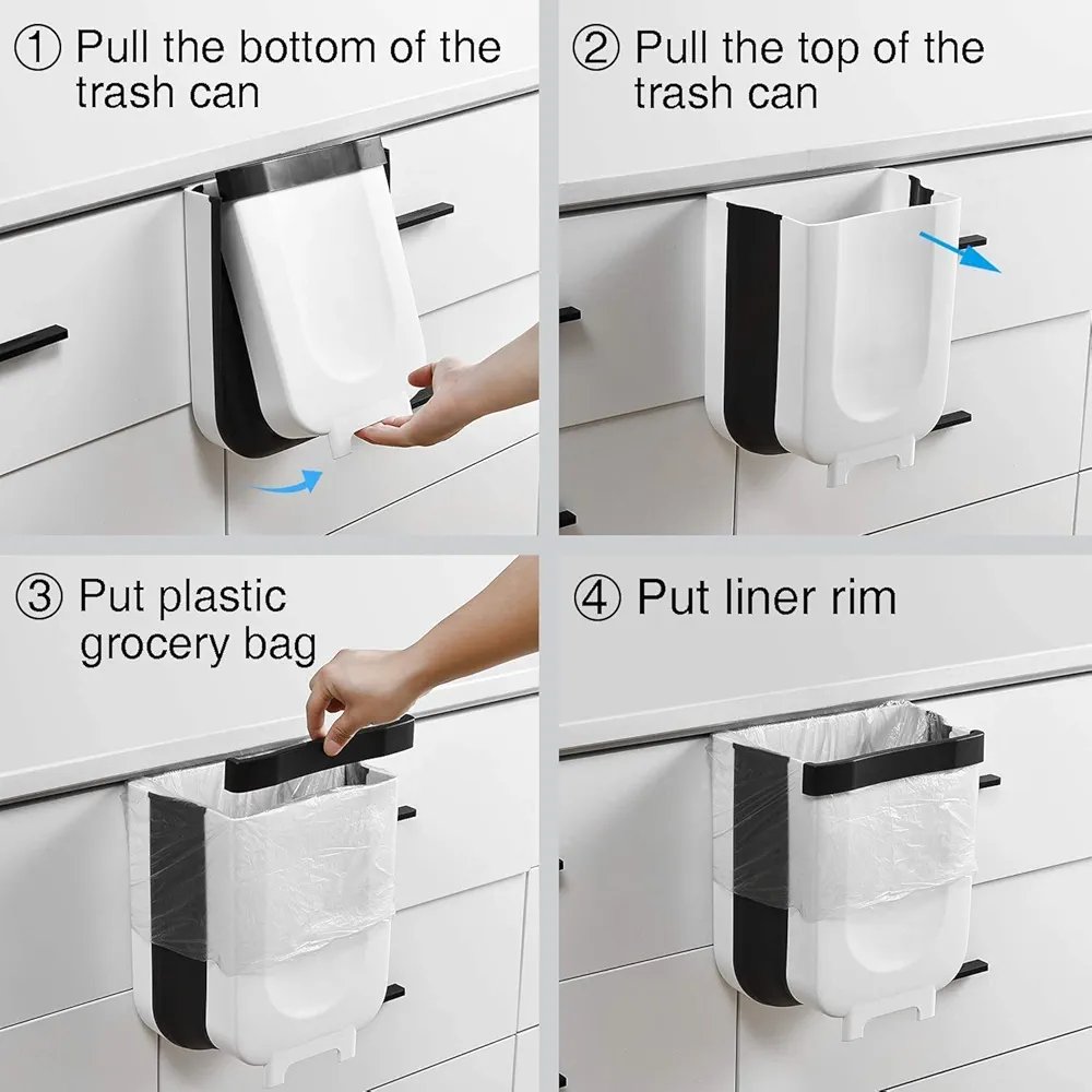 تصميم قابل للطي: يوفر مساحة قيمة في مطبخك، تخزين قابل للطي عند عدم استخدامه، سهل الحمل، مناسب للاستخدام في الهواء الطلق. يمكن تعليقها بسهولة على باب الخزانة لخزانة المطبخ/خزائن المكتب/أدراج غرفة النوم. لا حاجة للانحناء لإسقاط شيء ما. يمكن تحريكه حسب الرغبة باستخدام الخطاف فوق الباب.