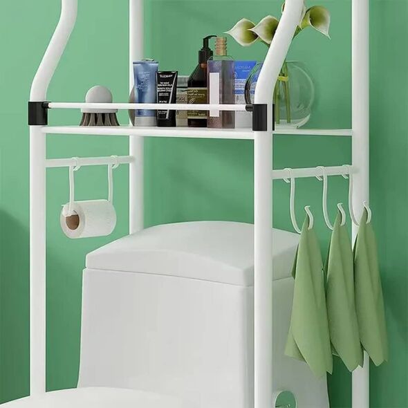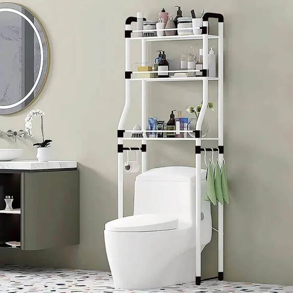رف تخزين متعدد الطبقات مصمم خصيصًا للاستفادة من المساحة فوق الغسالة، مثالي لتنظيم أدوات الغسيل والحمام بطريقة عملية وأنيقة.ثلاثة أرفف واسعة: توفر مساحة كافية لتخزين المنظفات، المنعمات، المناشف، ومستلزمات التنظيف الأخرى. هيكل قوي: مصنوع من المعدن المطلي بطبقة مقاومة للصدأ، يضمن الثبات والمتانة. تصميم موفر للمساحة: يتم تثبيته فوق الغسالة للاستفادة من المساحة العمودية دون شغل مساحة إضافية. خطافات جانبية: لتعليق المناشف الصغيرة أو أدوات التنظيف لسهولة الوصول.اللون: أبيض، يتناسب مع معظم الديكورات.حافظ على غرفة الغسيل منظمة ومرتبة مع هذا الرف العملي والأنيق!